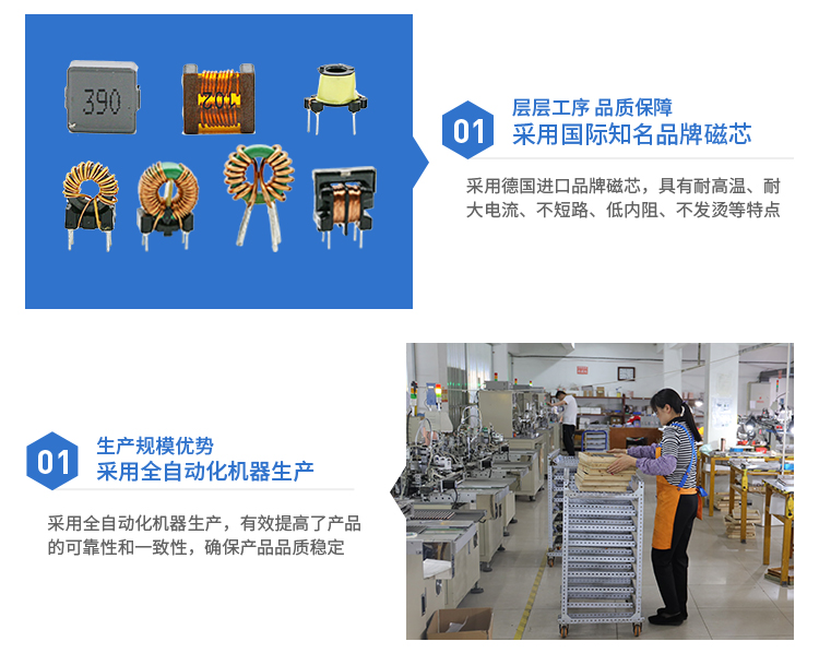 1.采用铁粉芯、锰锌、铁硅铝、非晶等等材质,以产生超大的电感量,高电流,防干扰对策
